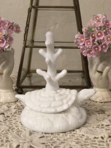 Vintage Fenton Milk Glass Turtle Ring Holder Tree Cactus