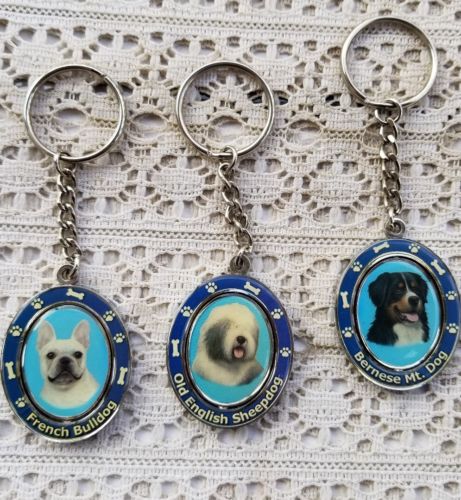 Title (ebay affiliate link): LOT Vintage Spinning Flip Dog Key Chains Sheepdog Bull Dog Bernese Mt Metal NR