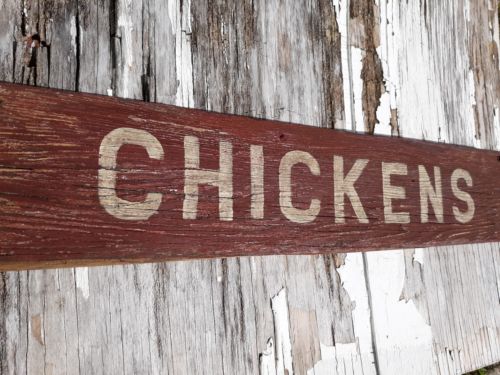 Old early Primitive antique farm chippy Barn Wood Sign CHICKENS