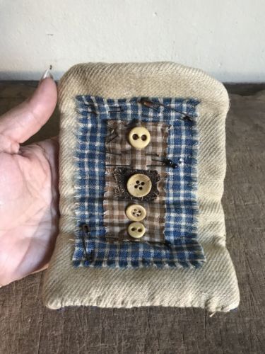 Title (ebay affiliate link): BEST Antique Housewife Sewing Pin Keep Blue Brown Homespun Calico AAFA