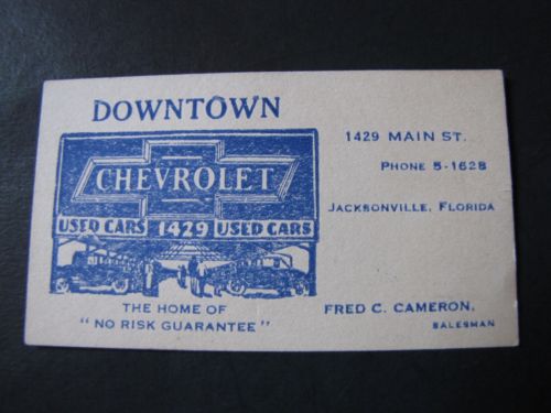 Title (ebay affiliate link): Vintage 1930''s Chevrolet Dealer Business Card Downtown Chevy Jacksonville Fla.