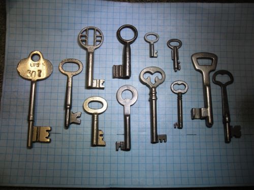 Title (ebay affiliate link): LOT OF 12 ANTIQUE SKELETON, FURNITURE, BARREL, CABINET AND OLD LOCK KEYS