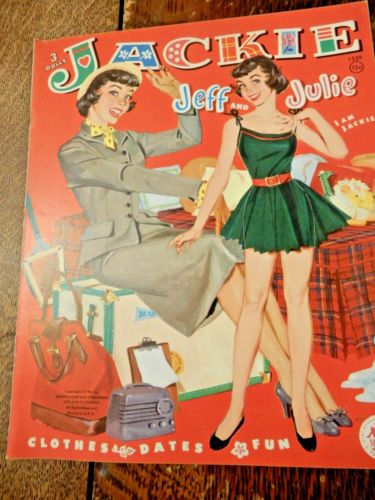 Title (ebay affiliate link): Vintage Uncut Paper Doll Book - Jackie, Jeff and Julie - Merrill - 57 Yrs Old