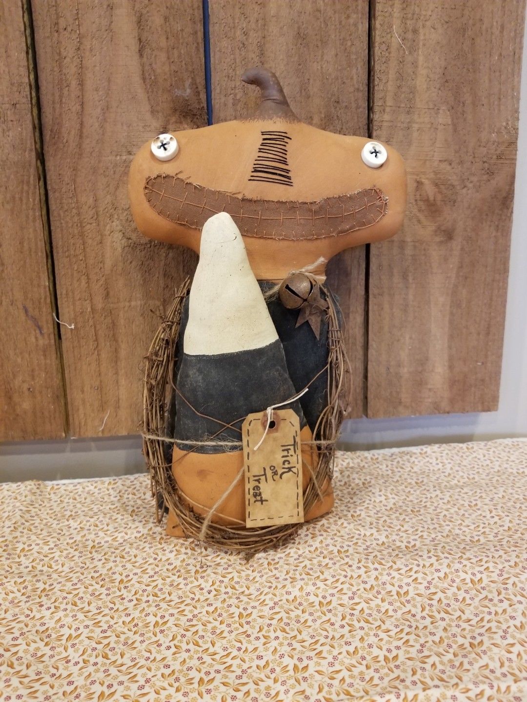 Title (ebay affiliate link): Primitive, Handmade, Rustic, Pumpkin Man (Trick or Treat) With Candy Corn - OOAK