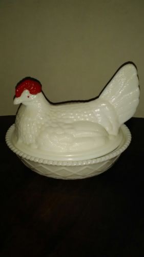 Title (ebay affiliate link): WESTMORELAND GLASS CO. HEN ON NEST WHITE MILK GLASS CHICKEN CANDY TRINKET DISH