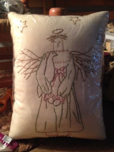 Handmade "Angel and Crow" Stitched Shelf Pillow