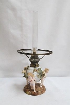 Title (ebay affiliate link): RARE Antique Meissen Crossed Swords3 Cherub Art Nouveau Porcelain Oil Lamp