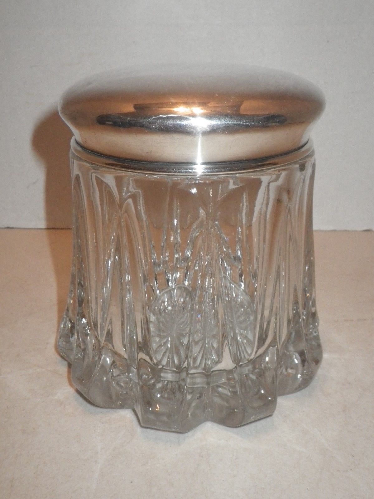 Title (ebay affiliate link): Vanity Cut Crystal Glass Candy Powder Jar with Sterling Silver Lid - 2.539 oz