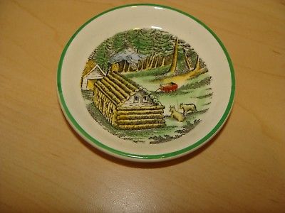 VINTAGE ADAMS CHINA ENGLAND BUTTER PAT DISH LOG CABIN IN WOODS