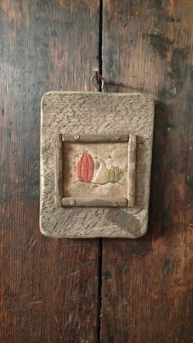 Title (ebay affiliate link): EARLY PRIMITIVE HAND STITCHED SAMPLER PUMPKINS, GOURDS FALL