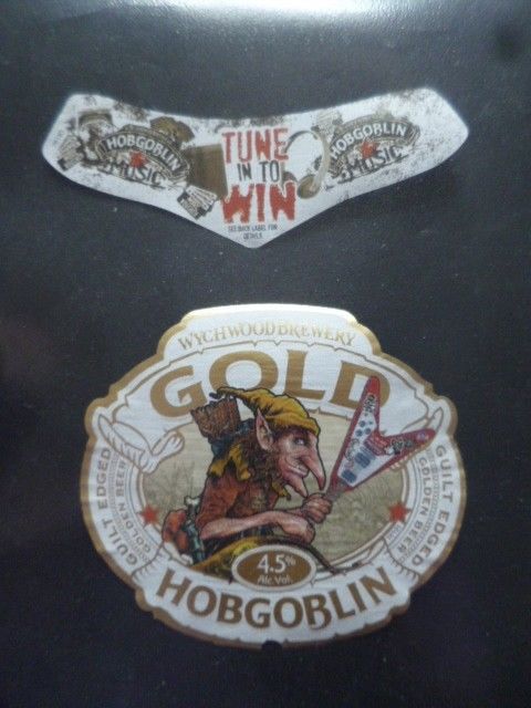 WYCHWOOD "HOBGOBLIN GOLD" BEER LABELS "GIBSON FLYING V GUITAR" .