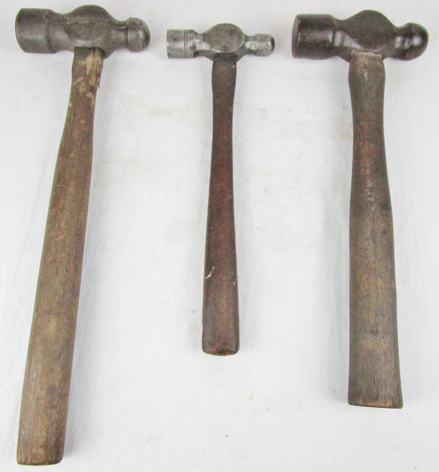 Vintage Lot of 3 Hammers Ball Peen Machinist''s Ball-Pein Metalworking Tools