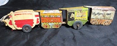 Title (ebay affiliate link): Vintage Cowboy Roy Rogers Tin Wind Up Toy Train - For Parts