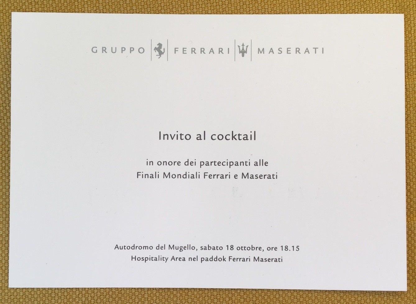 Ferrari Cocktail invitation factory issued card 15x10,5 Finali Mondiali Mugello