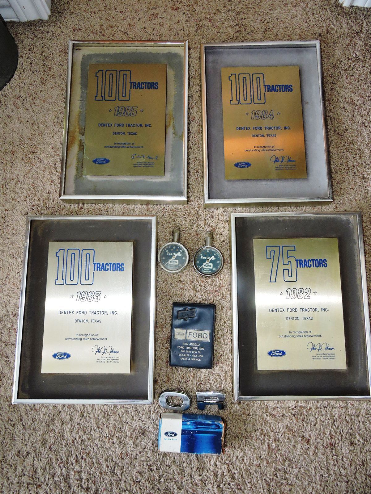 Vintage Ford Tractor Dealer Award Plaques Pressure Gauges Notepad Collectibles
