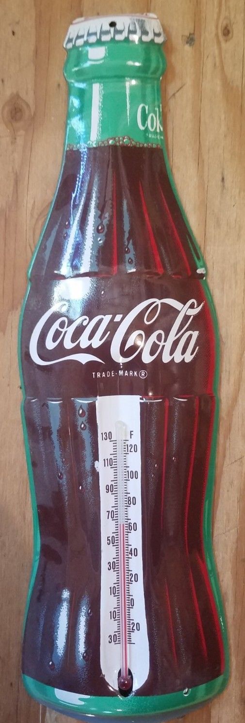 Title (ebay affiliate link): Vintage COCA-COLA Coke Bottle Thermometer Made In USA tin, metal 16-1/2"