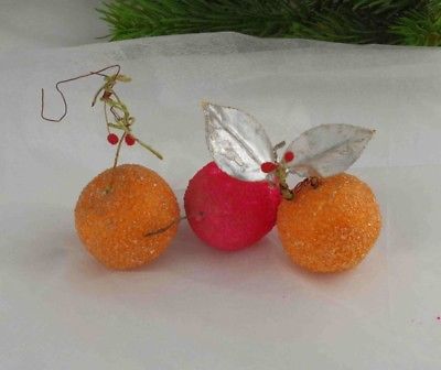 Title (ebay affiliate link): 3 x Vintage Spun Cotton Christmas Ornaments,strawberrys,tangerine