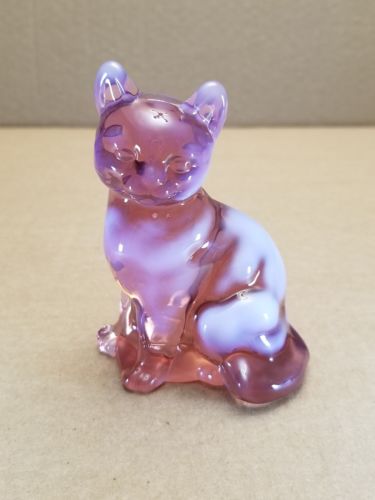 Title (ebay affiliate link): Vintage Fenton Glass Clear Amethyst and White Milk Glass Cat Kitten Figurine