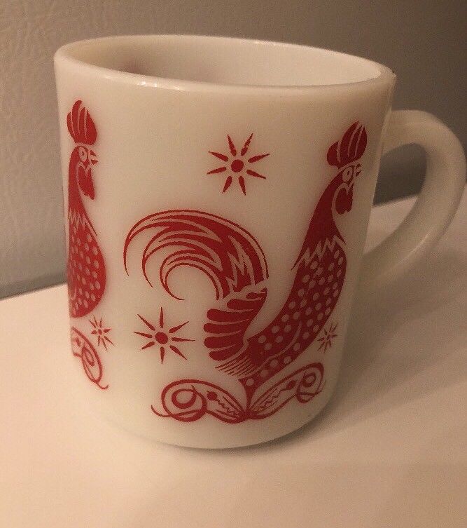 Vintage Hazel Atlas Milk Glass Red Rooster Coffee Cup Mug