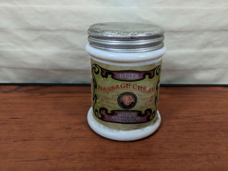 Title (ebay affiliate link): Vintage Bliss Massage Cream APOTHECARY Milk Glass jar with Lid empty