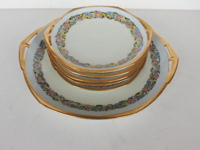 7 Pc Antique 1924 cake dessert set Limoges France Plate roses gold hand painted