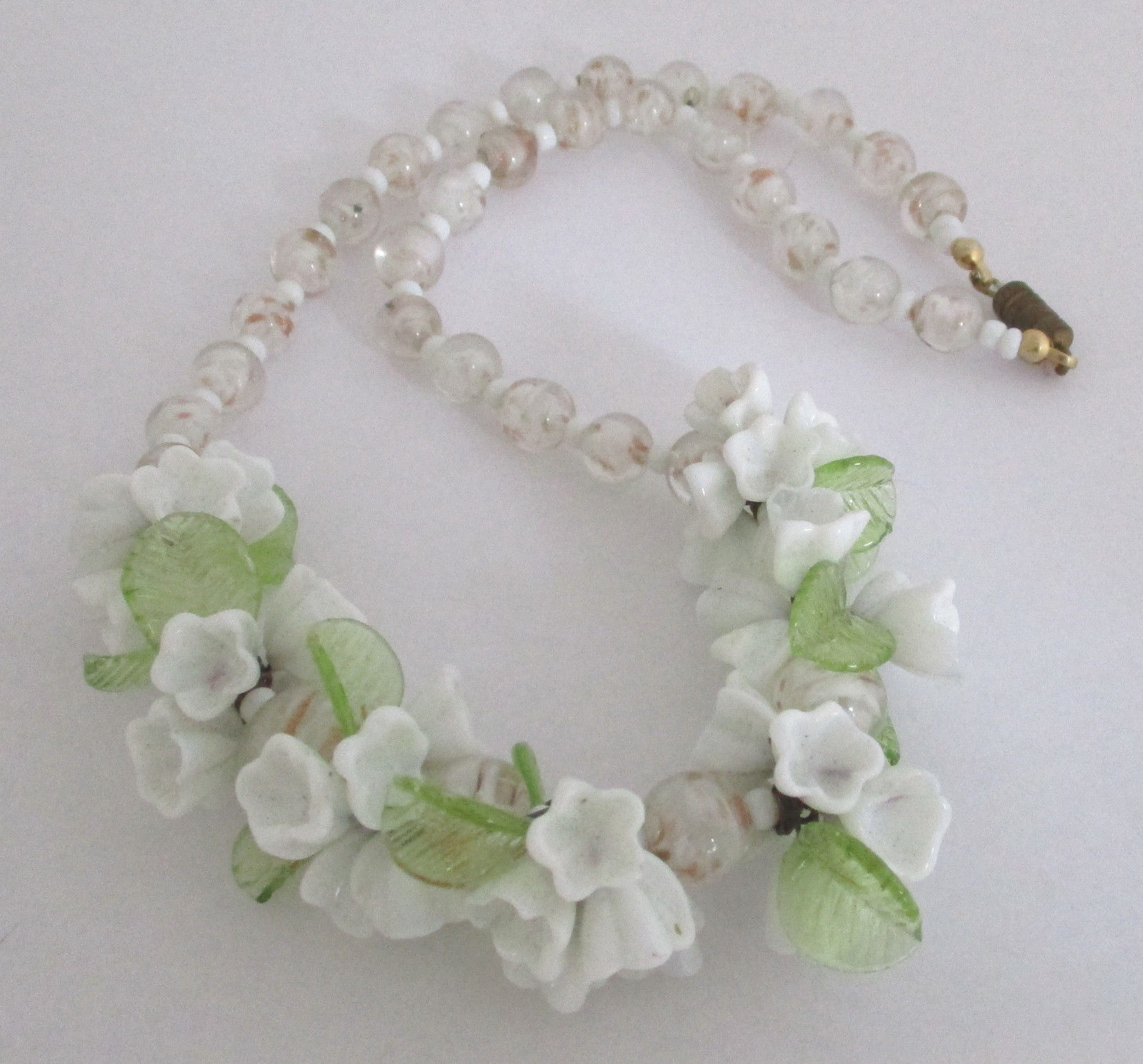 Vintage Milk Glass Flower/Venetian Glass Bead Necklace