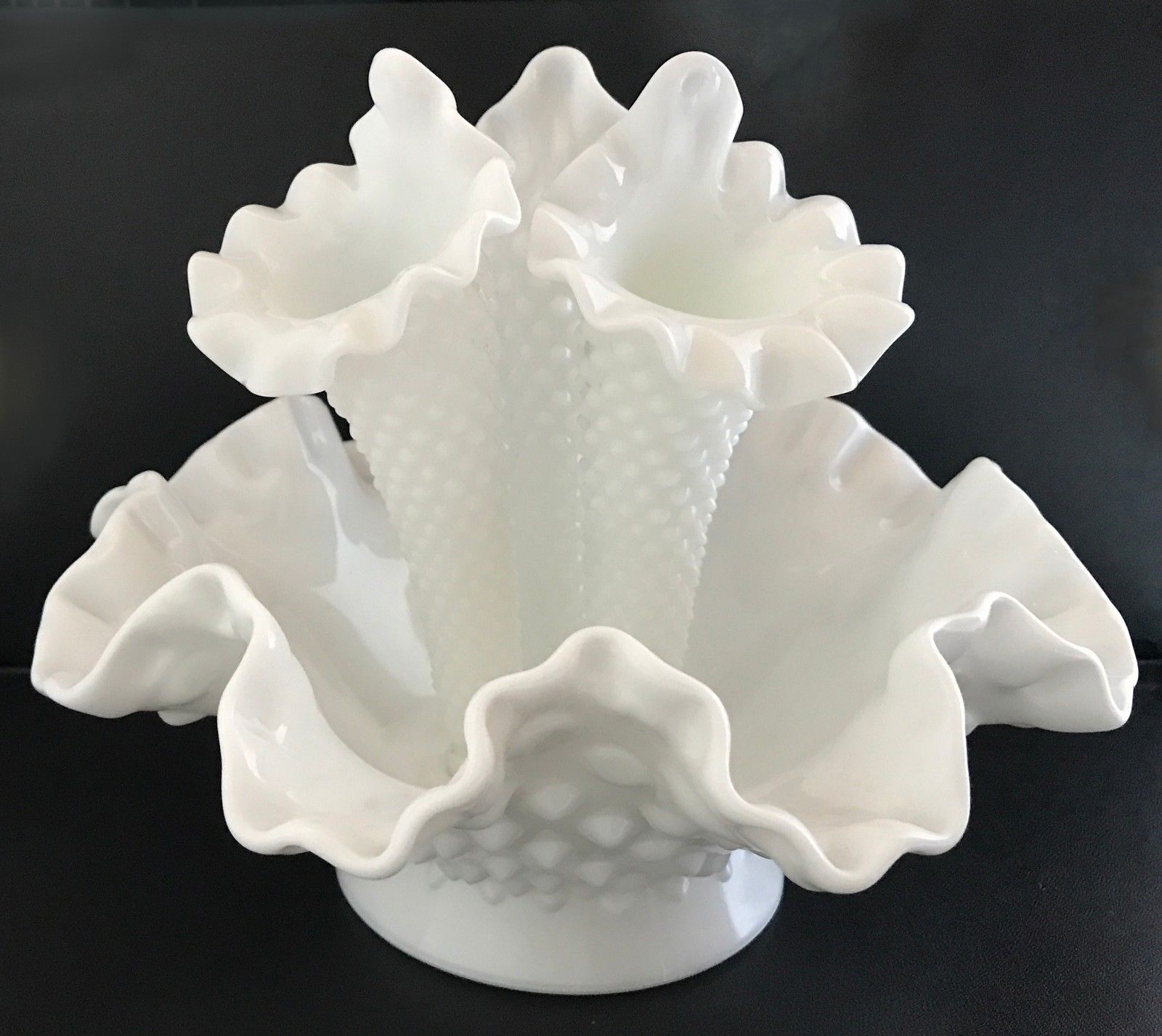 Title (ebay affiliate link): Vintage FENTON HOBNAIL RUFFLE WHITE ART Milk GLASS 3-HORN EPERGNE 7"H