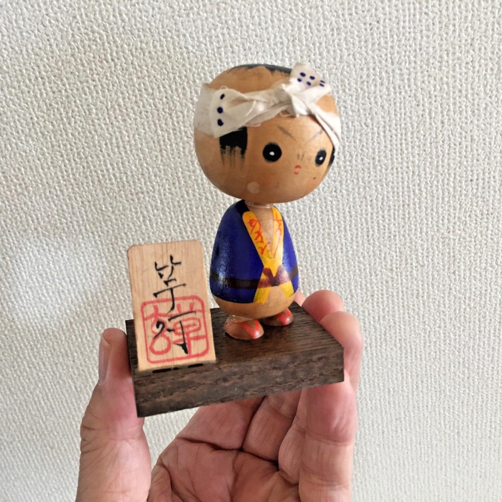 9.3cm Cute Boy Kokeshi Akita Japan Antique No.GN98