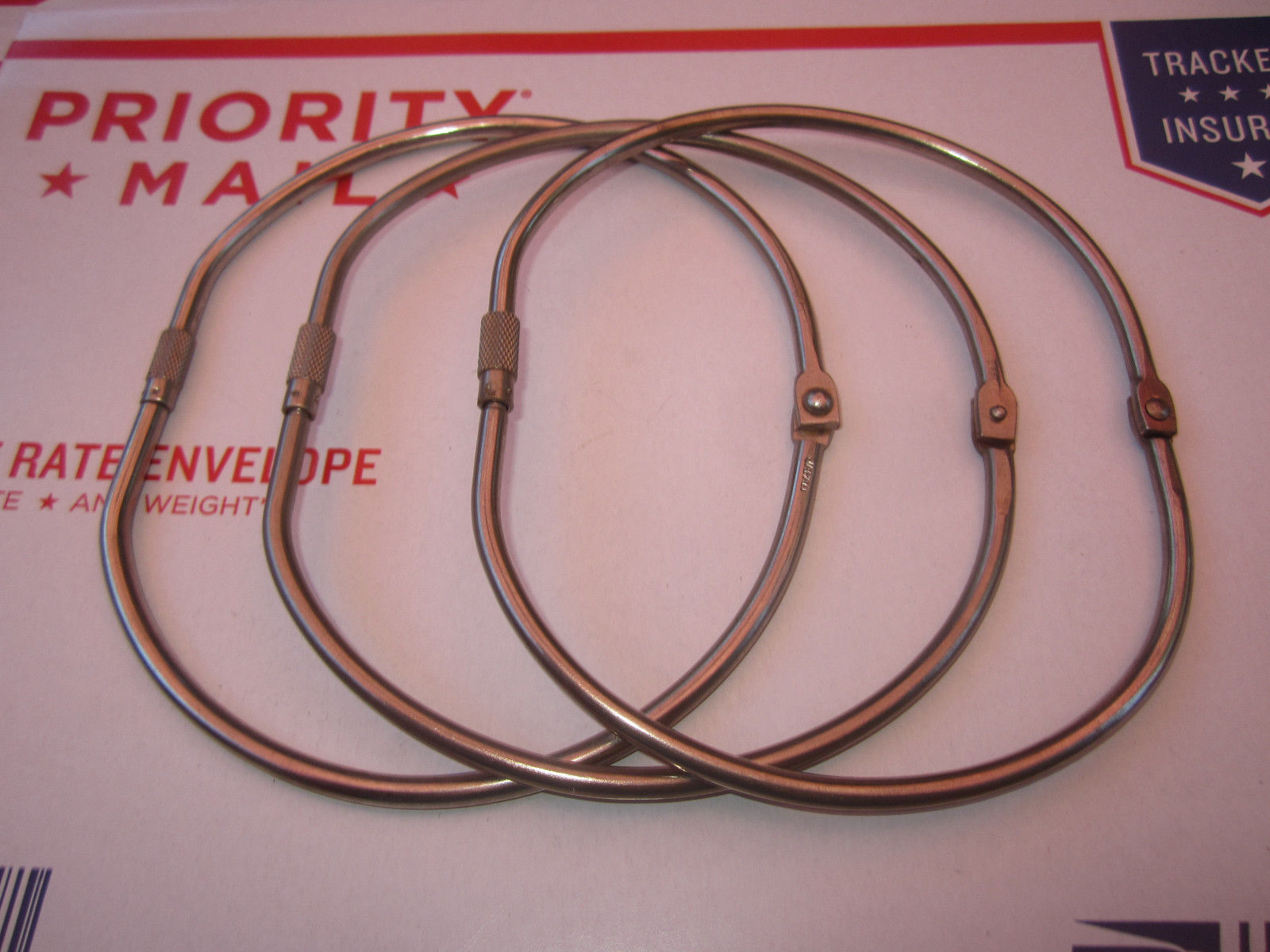 Title (ebay affiliate link): VINTAGE HEAVY DUTY STORAGE RINGS WITH THREADED CLOSURES 6" DIAMETER GOOD COND.