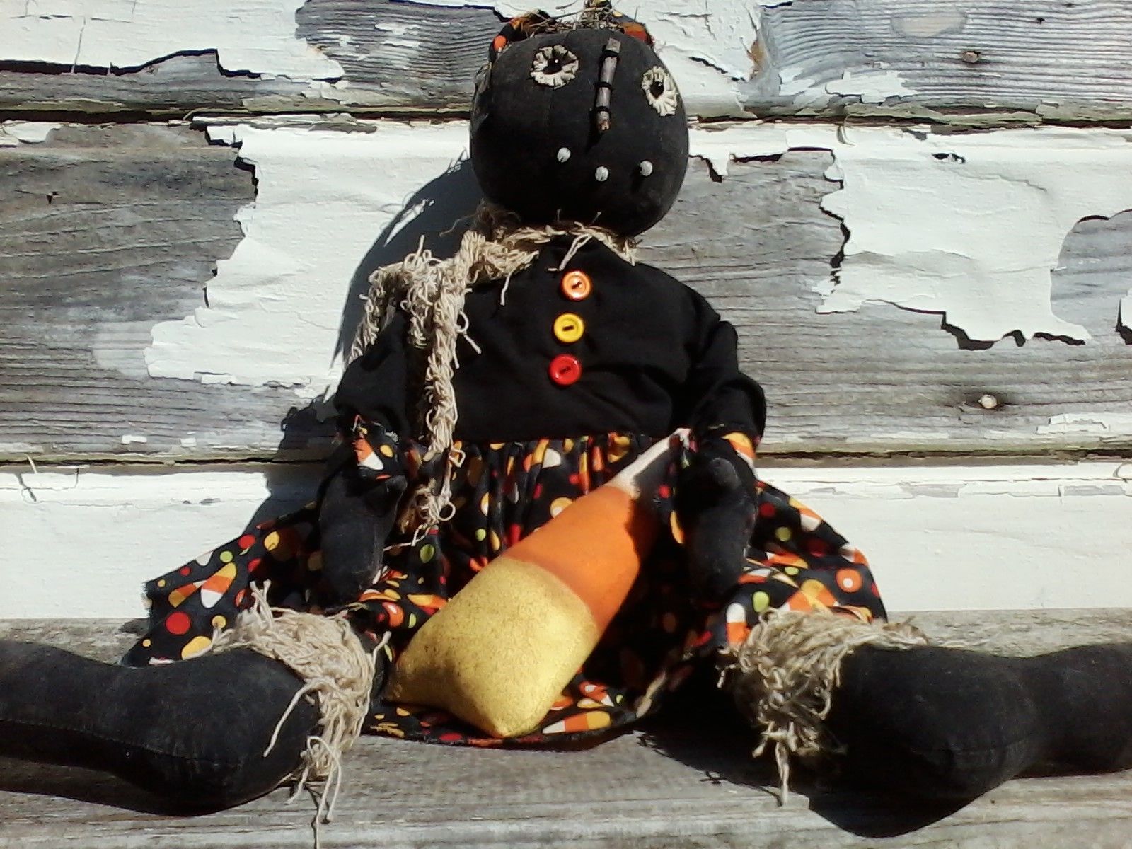 Title (ebay affiliate link): Primitive Halloween Black Pumpkin Doll Ornie Shelf Sitter Decor