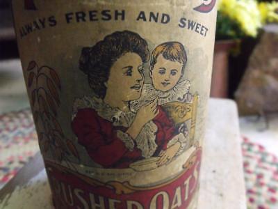 Antique Early 1900s Mother''s Crushed Oats Paperboard Canister GREAT Patina