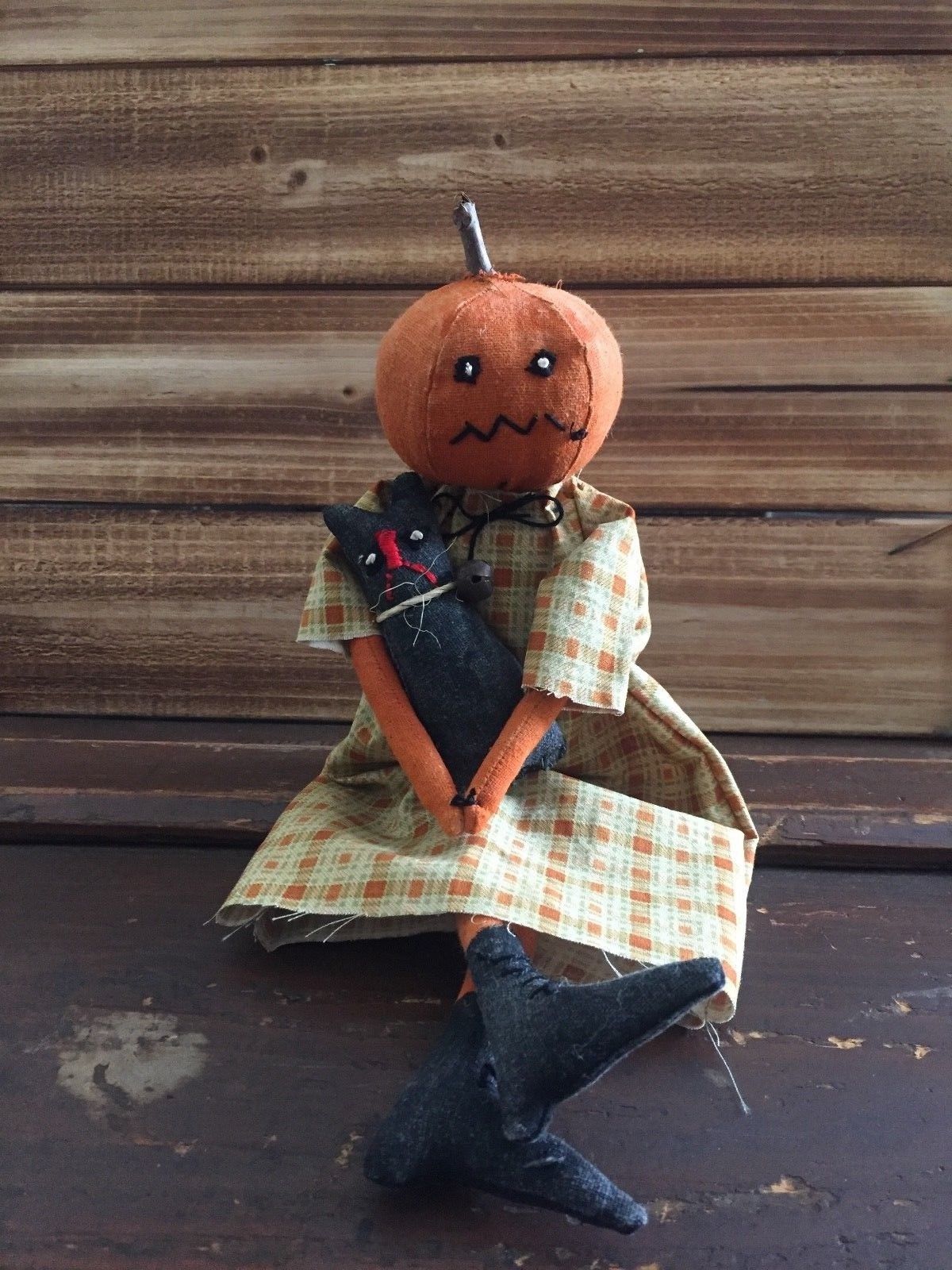 Title (ebay affiliate link): Primitive Pumpkin Doll Hallie and her cat Hand made