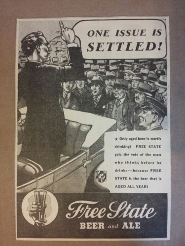 Title (ebay affiliate link): 1936 Free State Beer & Ale Ad One Issue Is Settled