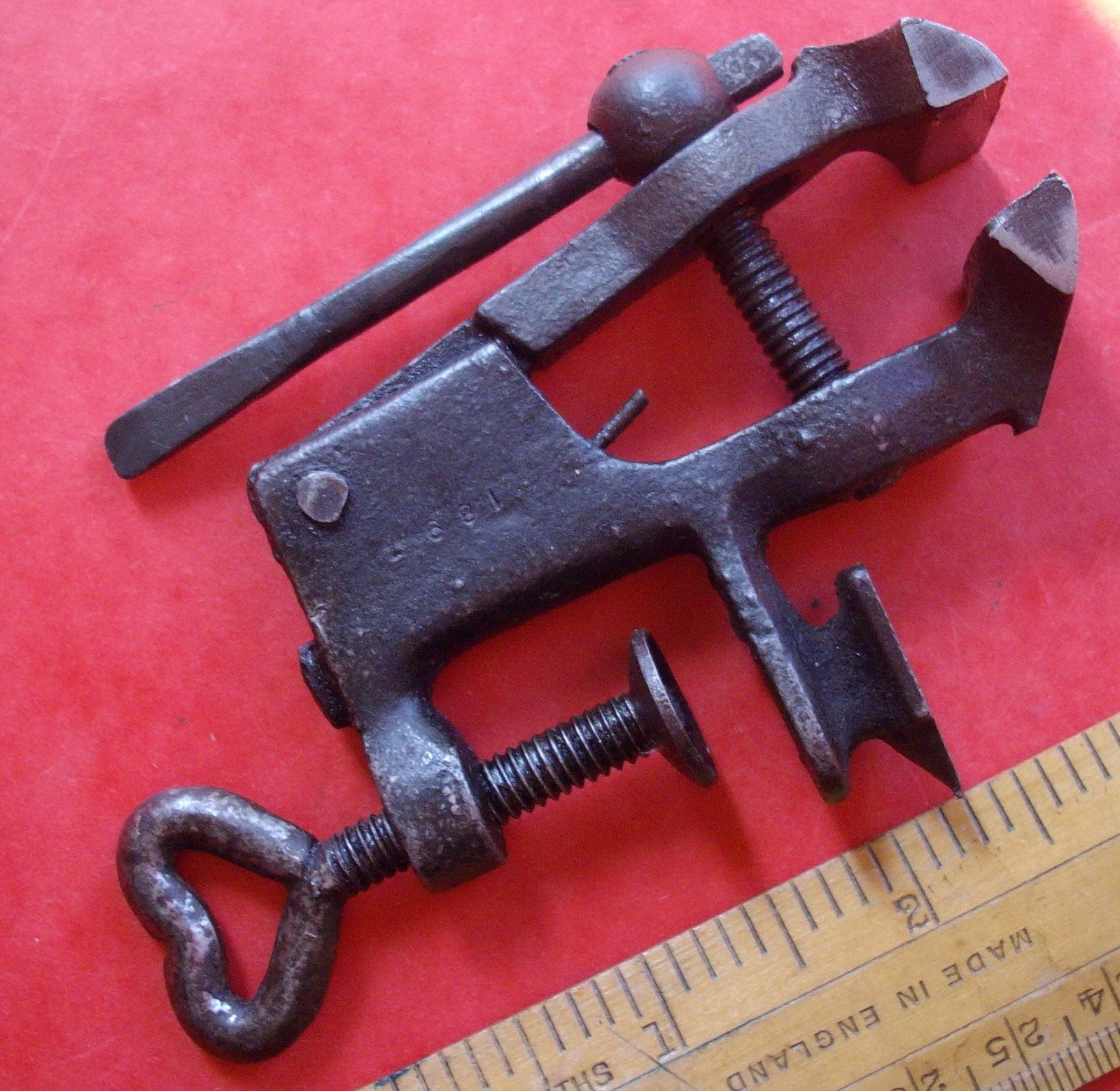 Title (ebay affiliate link): Antique Victorian 1897 Watch Clock Jewellers Anvil Back Clamp on Vice