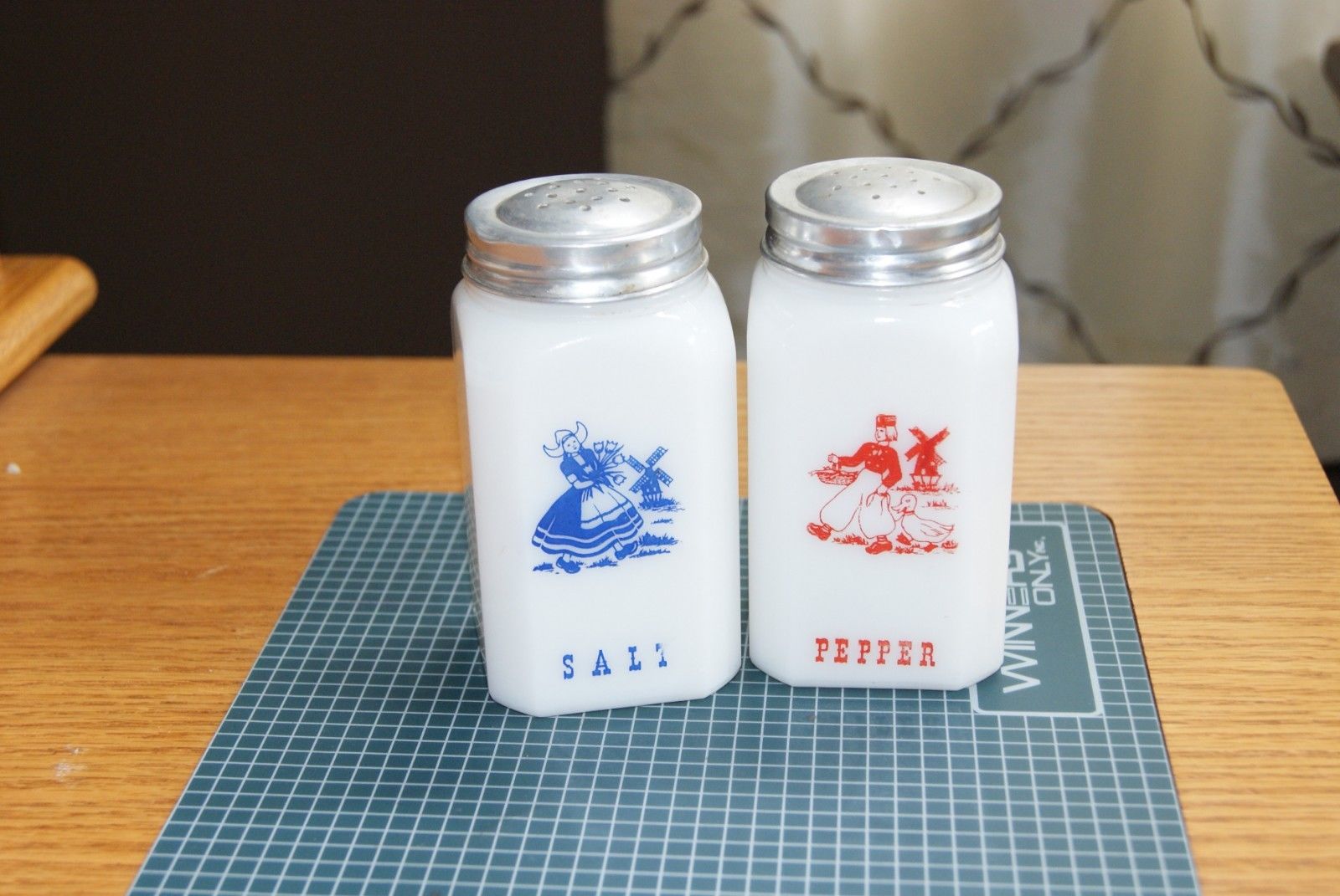 Title (ebay affiliate link): Vintage Milk Glass Salt and Pepper Shakers with Dutch Boy and Girl