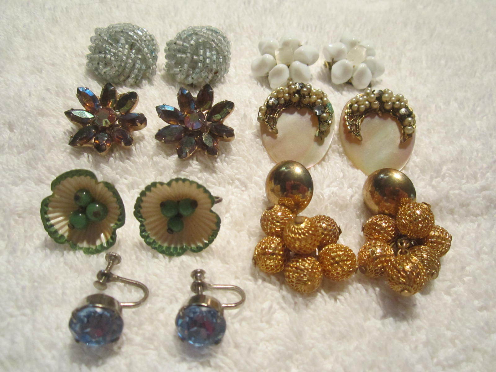 Title (ebay affiliate link): VINTAGE ESTATE EARRING Lot: lovely lot-milkglass,rhinestone,pearls,AB & more