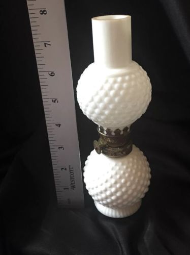 VINTAGE MILK GLASS HOBNAIL OIL LAMP TABLE