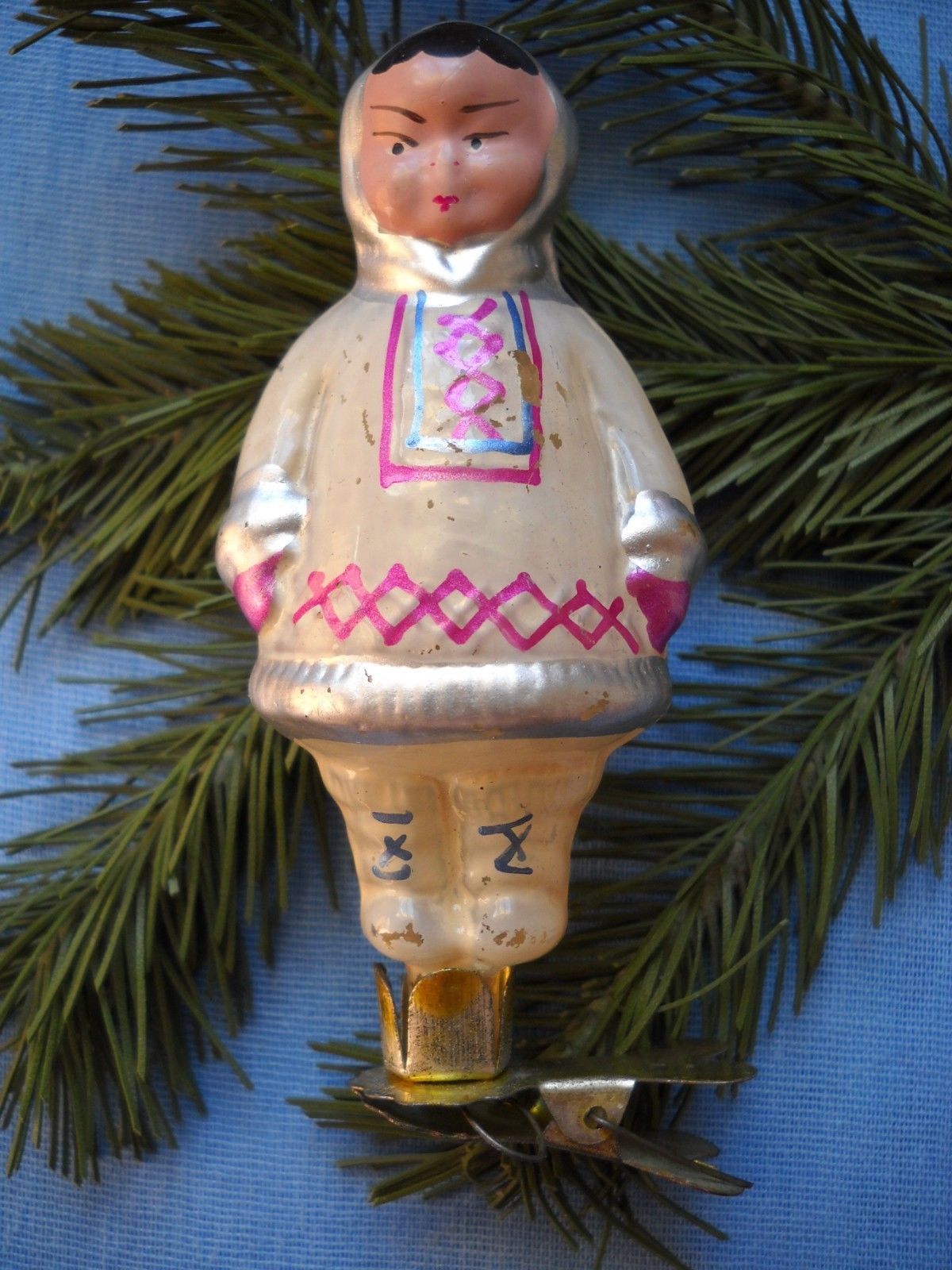 OLD RUSSIAN GLASS CHRISTMAS ORNAMENT ESKIMO