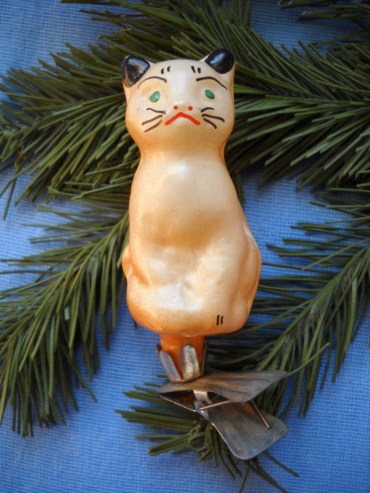 OLD RUSSIAN GLASS CHRISTMAS ORNAMENT CAT