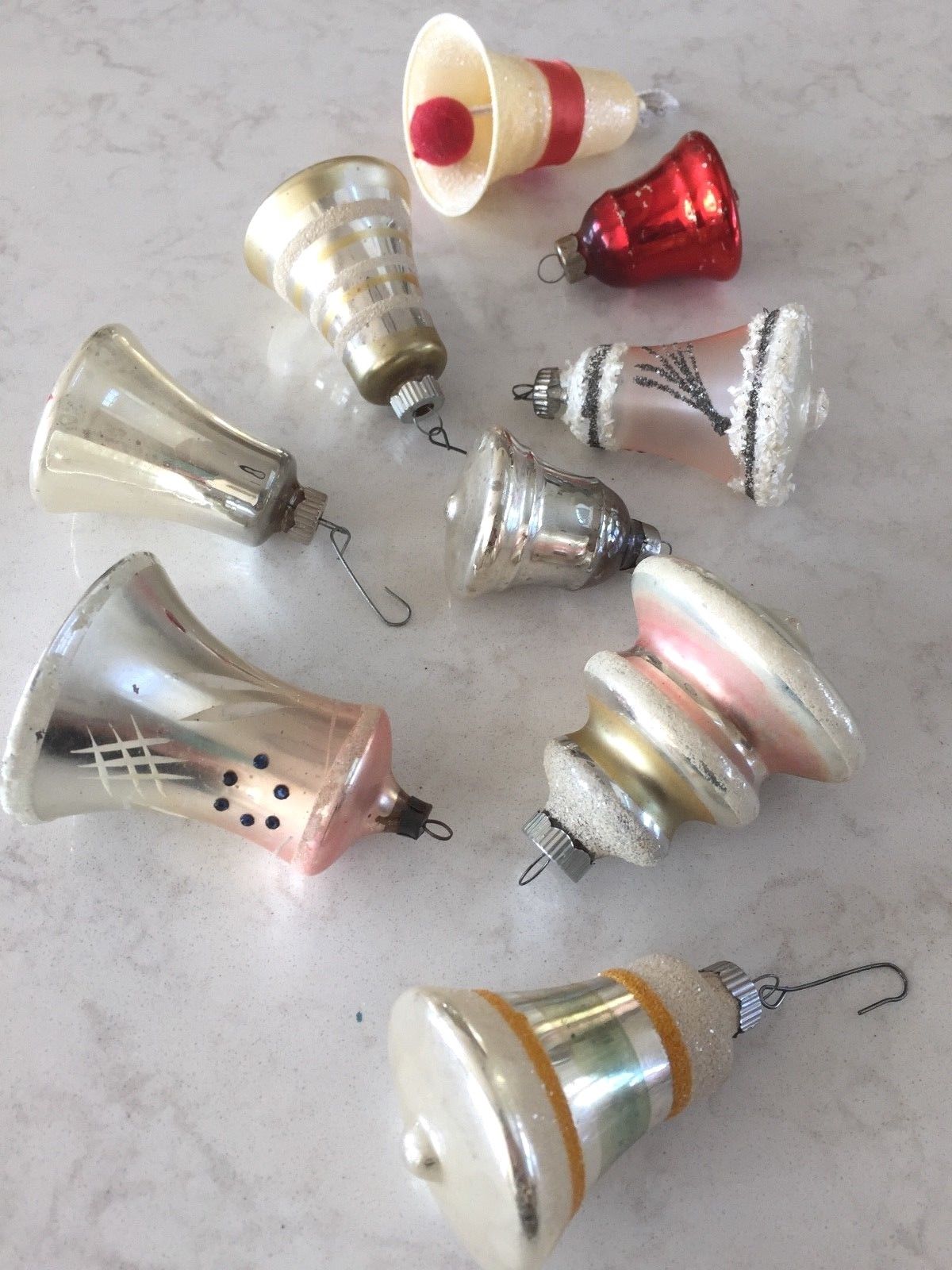 Title (ebay affiliate link): 9 Antique Vintage GLASS CHRISTMAS BELLS of ALL DESIGNS, CLAPPERS, SHINY BRITE !