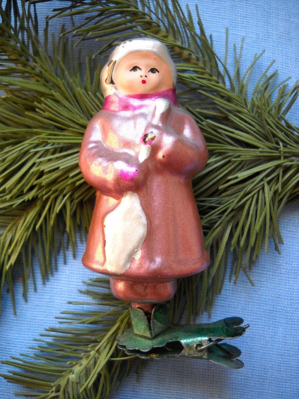 VINTAGE RUSSIAN GLASS CHRISTMAS ORNAMENT BOY WITH SHOVEL