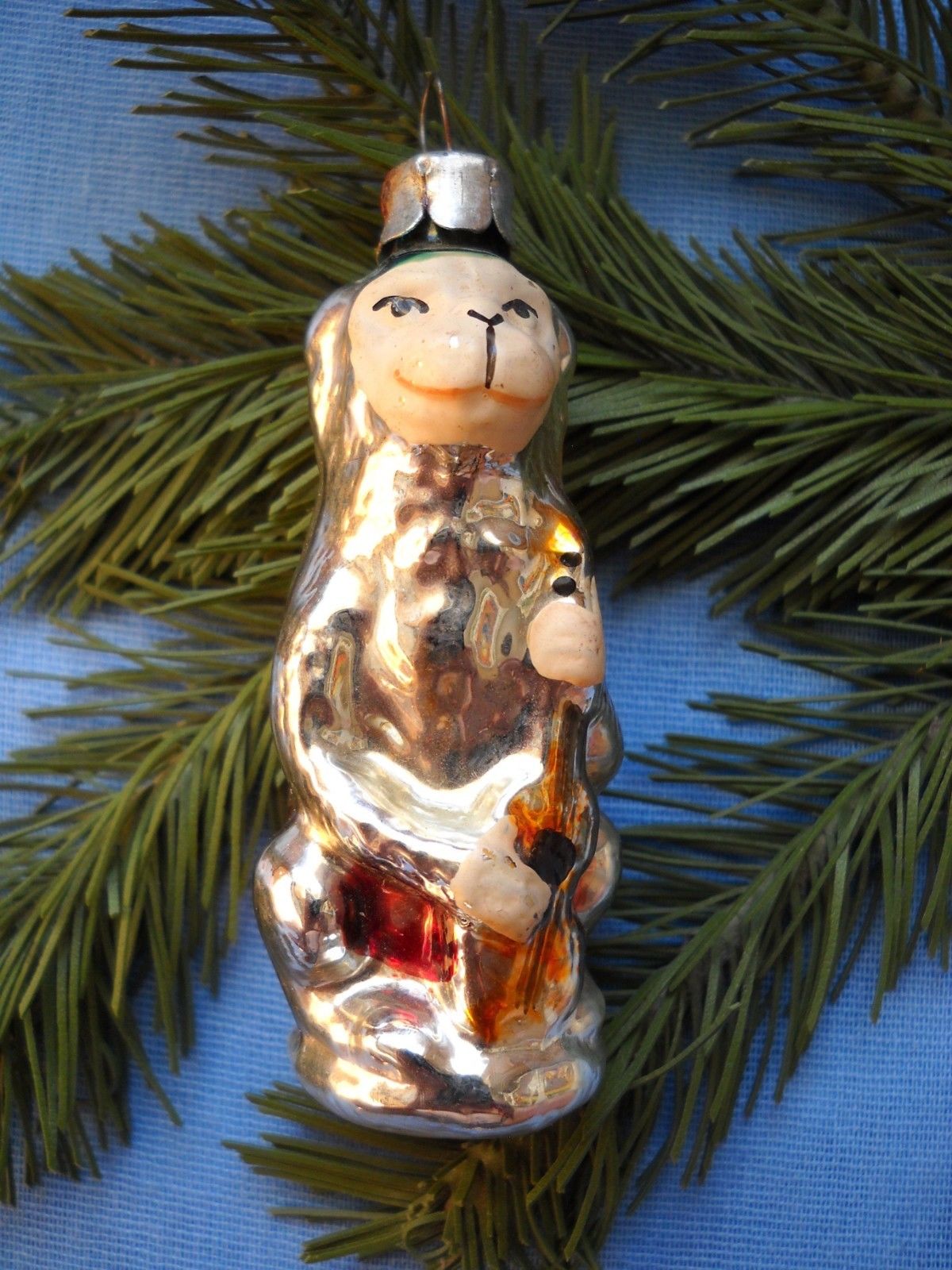 Title (ebay affiliate link): VINTAGE RUSSIAN GLASS CHRISTMAS ORNAMENT MONKEY MUSICIAN