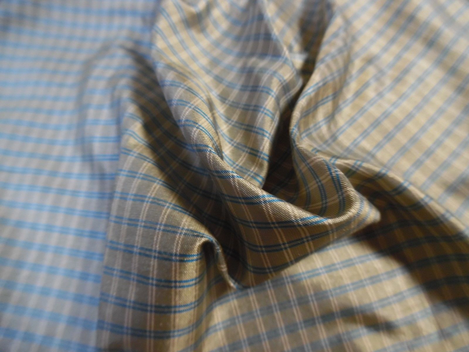 Title (ebay affiliate link): SMALL PLAID SILK TISSUE TAFFETA~GOLD/TEAL~MINIATURES~ANTIQUE DOLL DRESS~9x22