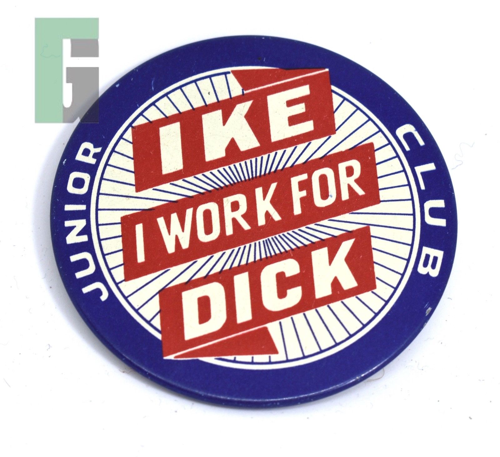 Title (ebay affiliate link): I work for IKE DICK Junior Club Presidential Election Campaign Political Button