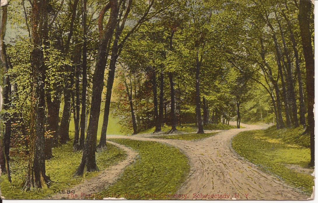 Title (ebay affiliate link): Historical Schenectady NY Post Card: Vale Cemetery Path, posted 1911