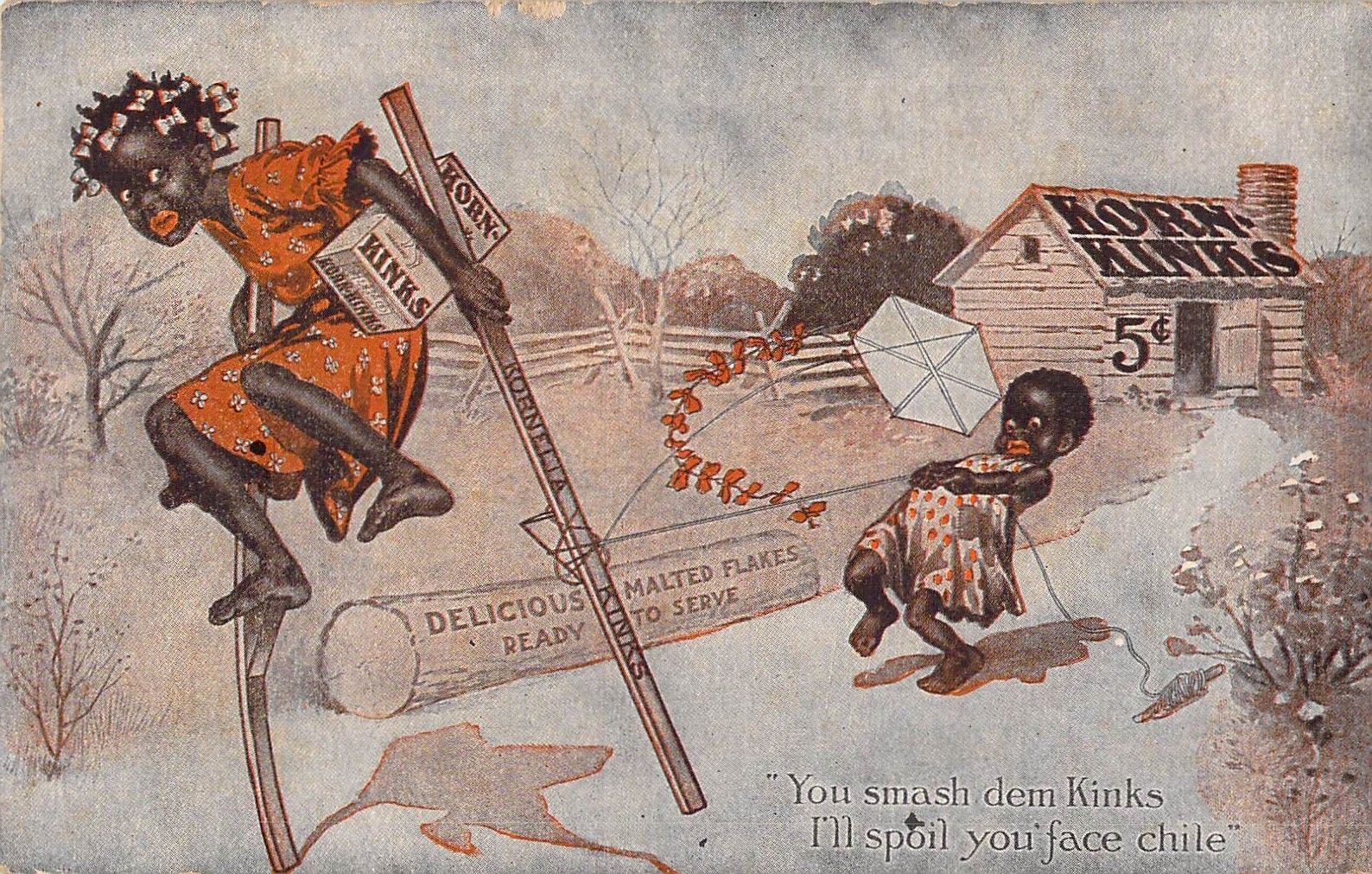 Title (ebay affiliate link): Black Americana, Korn Kinks, Kids on Stilts, Kite,Old Postcard