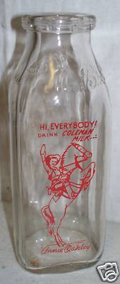 Vintage Cowgirl Annie Oakley Glass Milk Bottle Pint