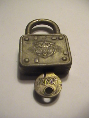 VINTAGE MASTER LOCK CO PADLOCK 77 TIGER WITH ORIGL KEY