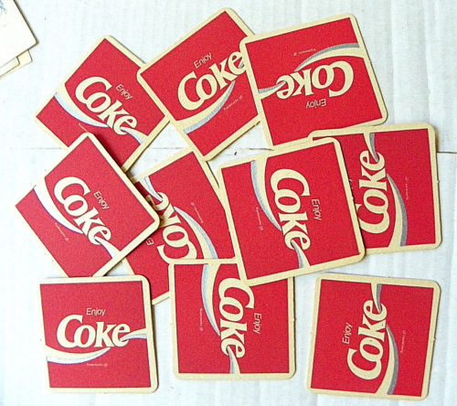Title (ebay affiliate link): (LOT OF 10) "ENJOY COKE" WITH WAVE THRU "E" SQUARE COASTERS
