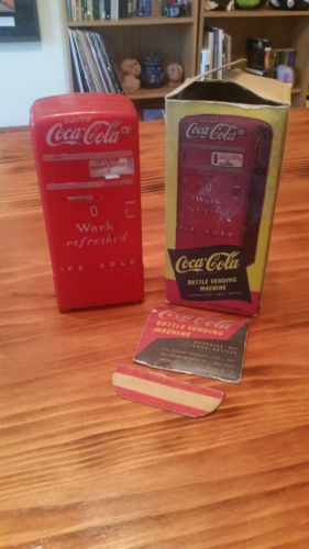 Title (ebay affiliate link): Rare Coca Cola 1950s Bottle Vending Machine Toy Bank w Box 20th Century Products